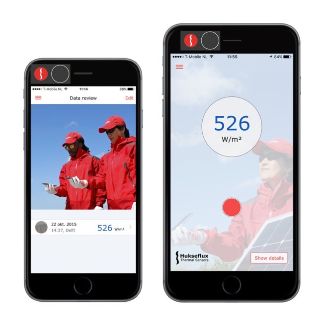使用我们的Pyranometer App 将您的iPhone变成“ pyranometer”。它使您能够以瓦特/平方米(W /m²)为单位测量太阳辐照度!在日常生活中,太阳辐射的测量是通过高精度的日照辐射表完成的。太阳辐射测量仪器的市场领导者Hukseflux Thermal Sensors免费提供了Pyranometer App。